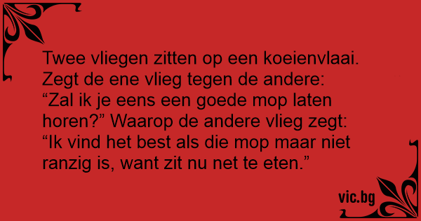 “Zal ik je eens een goede mop laten horen?” Waarop de andere vlieg zegt: