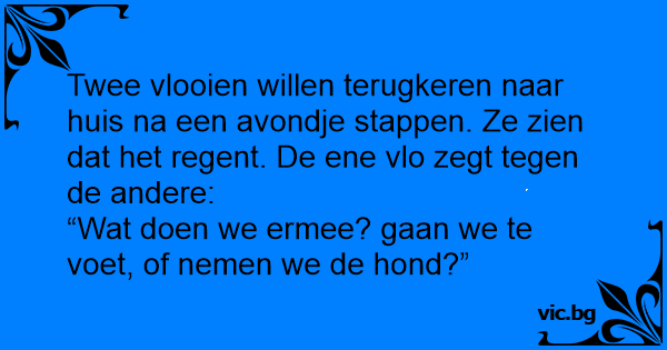 Twee vlooien willen terugkeren naar huis na een avondje stappen. Ze zien dat het regent. De ene vlo zegt tegen de andere: