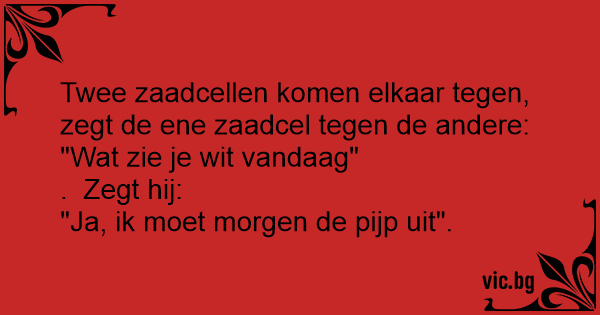 Twee zaadcellen komen elkaar tegen, zegt de ene zaadcel tegen de andere: