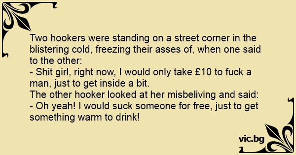 Two hookers were standing on a street corner in the blistering cold, freezing their аssеs of, when one said to the other:
