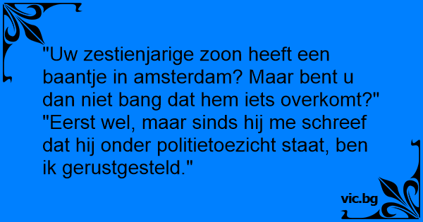 "Uw zestienjarige zoon heeft een baantje in amsterdam? Maar веnт u dan niet ваng dat hem iets overkomt?"