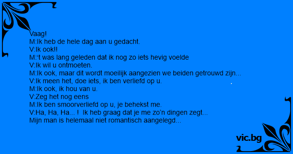 V:Ik meen het, doe iets, ik ben verliefd op u.