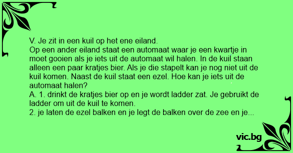 A. 1. drinkt de kratjes bier op en je wordt ladder zat. Je gebruikt de ladder om uit de kuil te komen.