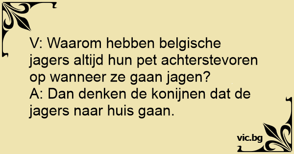 V: Waarom hebben belgische jagers altijd hun pet achterstevoren op wanneer ze gaan jagen?
