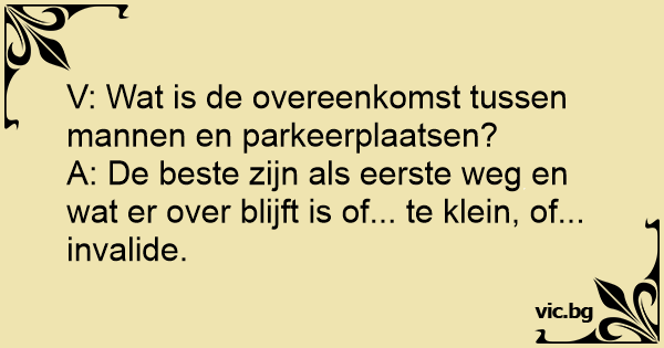 V: Wat is de overeenkomst tussen mannen en parkeerplaatsen?