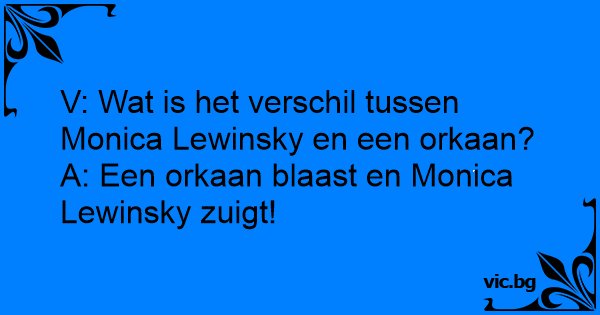 A: Een orkaan blaast en Monica Lewinsky zuigt!