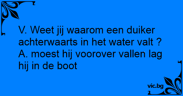 V. Weet jij waarom een duiker achterwaarts in het water valt ?