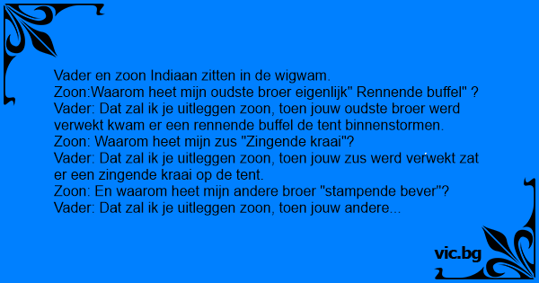 Vader: Dat zal ik je uitleggen zoon, toen jouw andere broer werd verwekt kwam er een stampende bever de tent in.