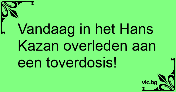 Vandaag in het Hans Kazan overleden aan een toverdosis!