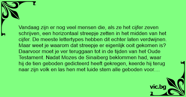 Ar žinote, kodėl kai kurie žmonės rašo septynetą su horizontalia linija, nors visose spausdinimo mašinėlėse bei kompiuteriuose rašoma be brūkšnio? Kai Mozė, nulipęs nuo Sinajaus kalno, pradėjo...