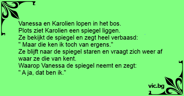 Ze bekijkt de spiegel en zegt heel verbaasd: