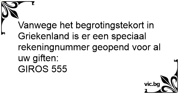 Vanwege het begrotingstekort in Griekenland is er een speciaal rekeningnummer geopend voor al uw giften: