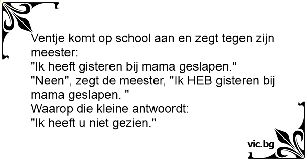 "Neen", zegt de meester, "Ik HEB gisteren bij mama geslapen. "