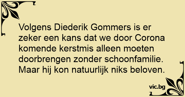 Volgens Diederik Gommers is er zeker een kans dat we door Corona komende kerstmis alleen moeten doorbrengen zonder schoonfamilie. Maar hij kon natuurlijk niks beloven.