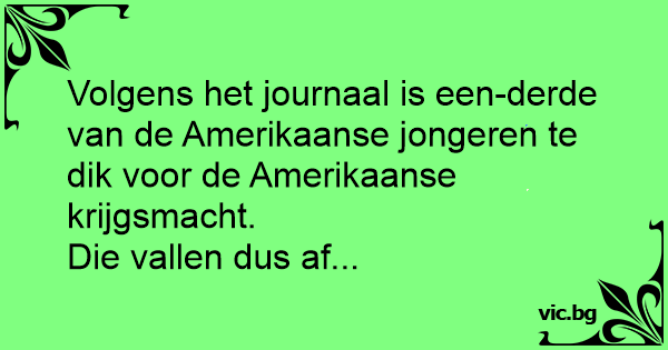 Volgens het journaal is een-derde van de Amerikaanse jongeren te dik voor de Amerikaanse krijgsmacht.
