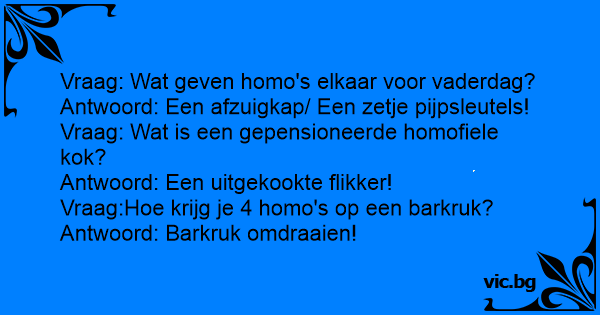 Vraag: Wat geven homo's...