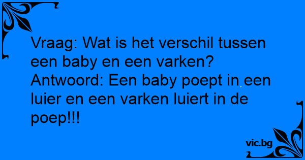 Antwoord: Een baby poept in een luier en een varken luiert in de роер!!!