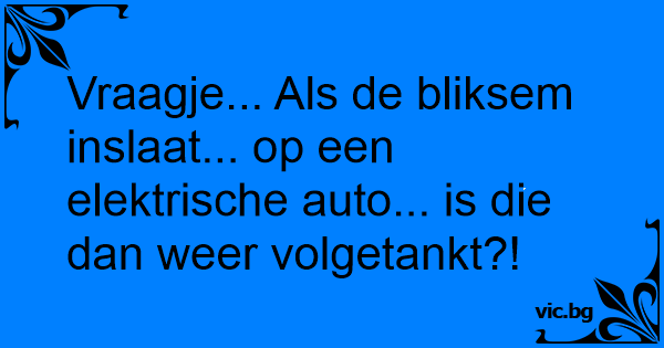 Vraagje... Als de bliksem inslaat... op een elektrische auto... is die dan weer volgetankt?!