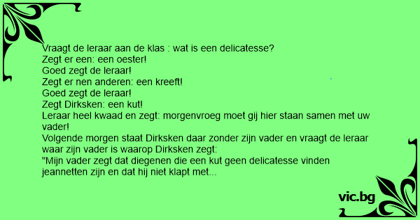 Vraagt de leraar aan de klas : wat is een delicatesse?