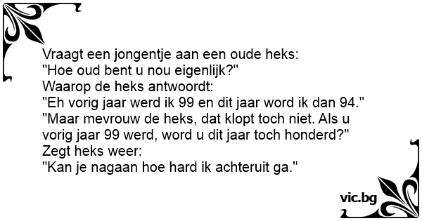 "Eh vorig jaar werd ik 99 en dit jaar word ik dan 94."