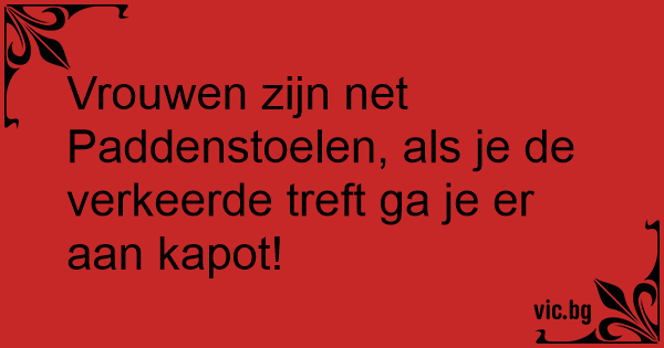 Vrouwen zijn net Paddenstoelen, als je de verkeerde treft ga je er aan kapot!