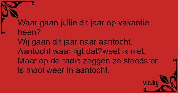 Wij gaan dit jaar naar aantocht. Aantocht waar ligt dat?weet ik niet.