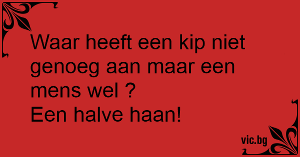 Waar heeft een kip niet genoeg aan maar een mens wel ?