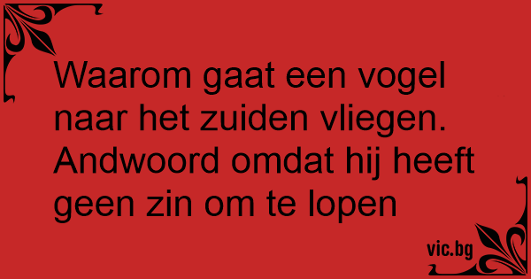 Waarom gaat een vogel naar het zuiden vliegen. Andwoord omdat hij heeft geen zin om te lopen