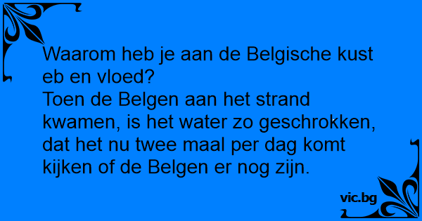 Toen de Belgen aan het strand kwamen, is het water zo geschrokken, dat het nu twee maal per dag komt kijken of de Belgen er nog zijn.