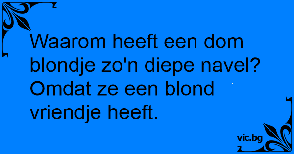 Waarom heeft een dom blondje zo'n diepe navel? Omdat ze een blond vriendje heeft.