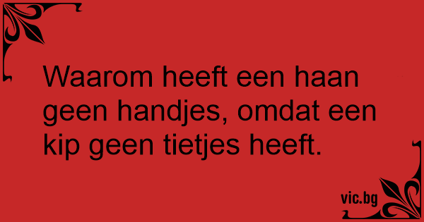 Waarom heeft een haan geen handjes, omdat een kip geen tietjes heeft.