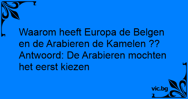 Waarom heeft Europa de Belgen en de Arabieren de Kamelen ??