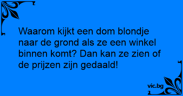 Waarom kijkt een dom blondje naar de grond als ze een winkel binnen komt? Dan kan ze zien of de prijzen zijn gedaald!