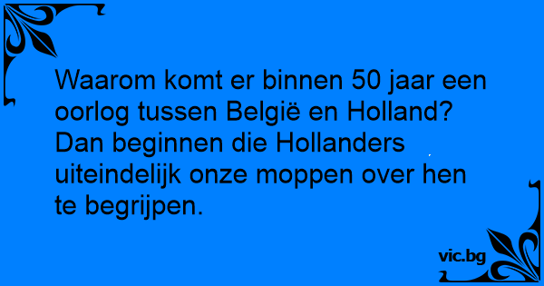 Waarom zullen we over 30 jaar oorlog krijgen met België? Omdat ze dan pas onze grappen snappen.