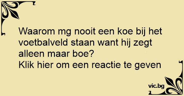 Waarom mg nooit een koe bij het voetbalveld staan want hij zegt alleen maar boe?