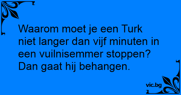 Waarom moet je een Turk niet langer dan vijf minuten in een vuilnisemmer stoppen?