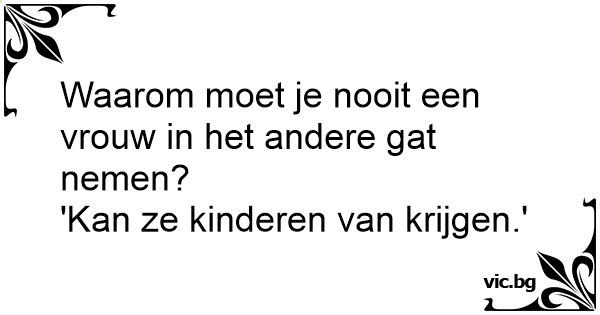 Waarom moet je nooit een vrouw in het andere gat nemen?