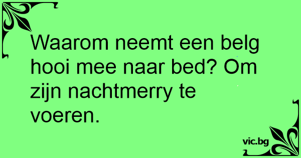 Waarom neemt een belg hooi mee naar bed? Om zijn nachtmerry te voeren.