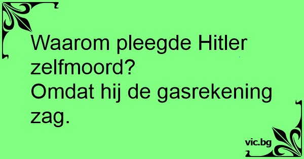 Vraag:hoe is Hitler gestorven? Antwoord:hij kreeg een hartaanval toen hij de gasrekening kreeg.
