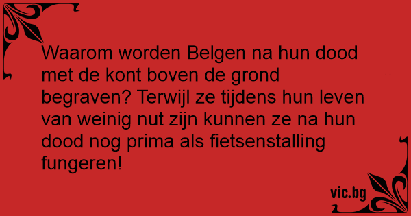 Waarom worden Belgen na hun dood met de kont boven de grond begraven? Terwijl ze tijdens hun leven van weinig nut zijn kunnen ze na hun dood nog prima als fietsenstalling fungeren!