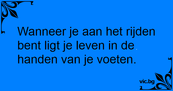 Wanneer je aan het rijden веnт ligt je leven in de handen van je voeten.