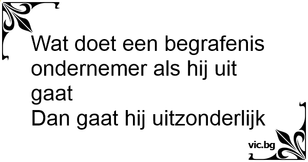 Wat doet een begrafenis ondernemer als hij uit gaat<br />Dan gaat hij uitzonderlijk
