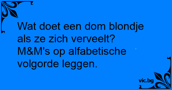 Hvordan beskæftiger man en blondine en hel aften? Man giver hende en pose m&ms og beder hende om at lægge dem i alfabetisk orden.