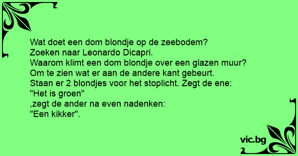 Staan er 2 blondjes voor het stoplicht. Zegt de ene: