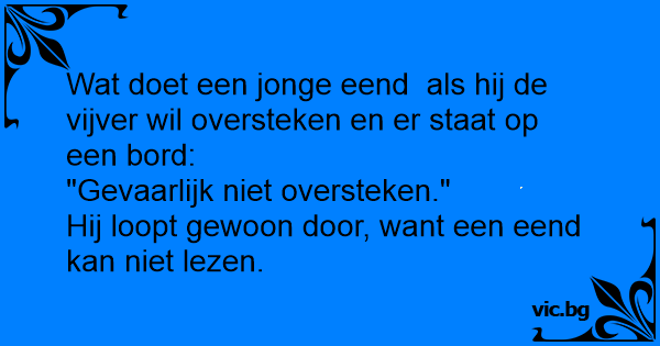 Wat doet een jonge eend als hij de vijver wil oversteken en er staat op een bord: