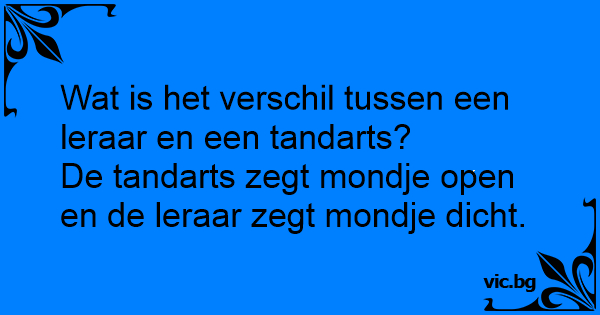 De tandarts zegt mondje open en de leraar zegt mondje dicht.