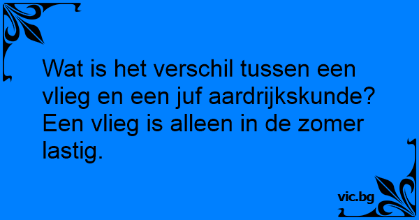 Wat is het verschil tussen een vlieg en een juf aardrijkskunde?