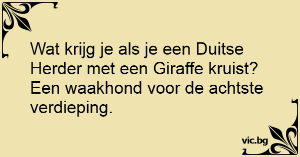 Wat krijg je als je een Duitse Herder met een Giraffe kruist?