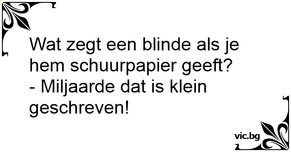 Wat zegt een blinde als je hem schuurpapier geeft?