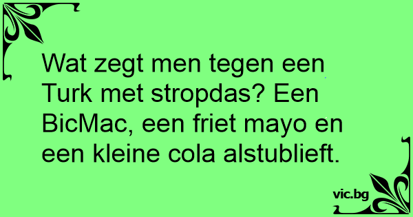 Wat zegt men tegen een Turk met stropdas? Een BicMac, een friet mayo en een kleine cola alstublieft.
